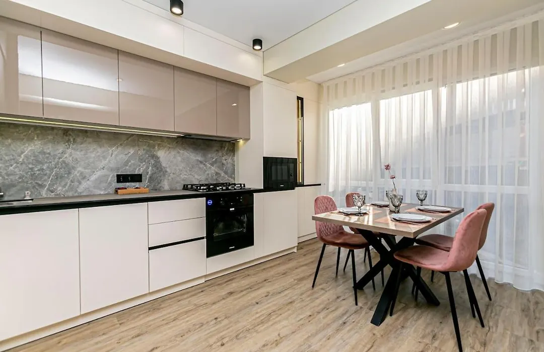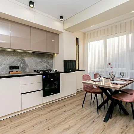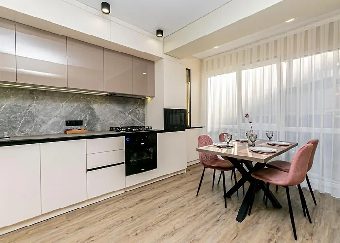 Une cuisine complète à Appartement Decebal Avenue comprend un four et un lave-vaisselle. L'aéroport le plus proche est Chisinau Aeroport, à 5 km d'Appartement Decebal Avenue, et l'arrêt de bus Strada Brancusi est à seulement 5 minutes de marche.